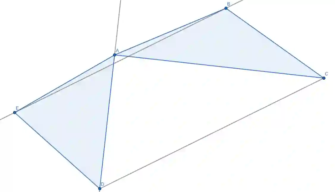 Je dán konvexní pětiúhelník $ABCDE$ takový, že $|AB| = |BC|$, $|AE| = |DE|$, $AC \bot AD$ a $CD \parallel BE$. Dokažte, že trojúhelníky $ABC$ a $AED$ mají stejné obsahy.