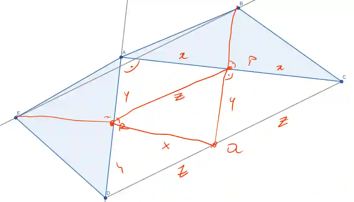 Je dán konvexní pětiúhelník $ABCDE$ takový, že $|AB| = |BC|$, $|AE| = |DE|$,